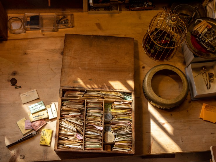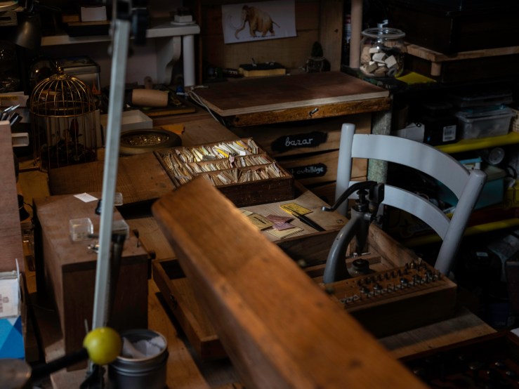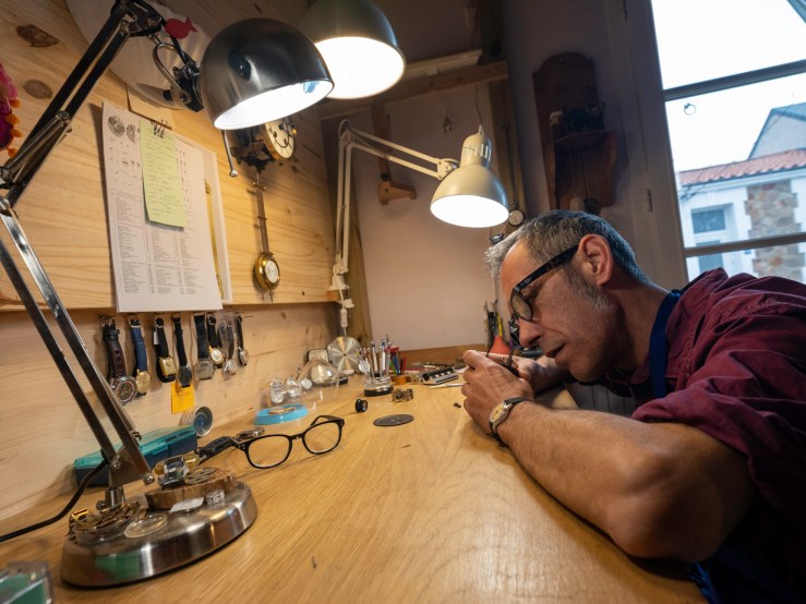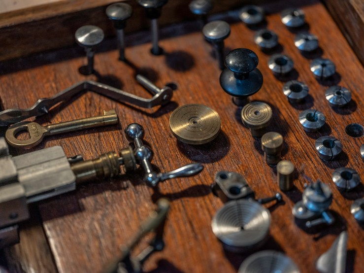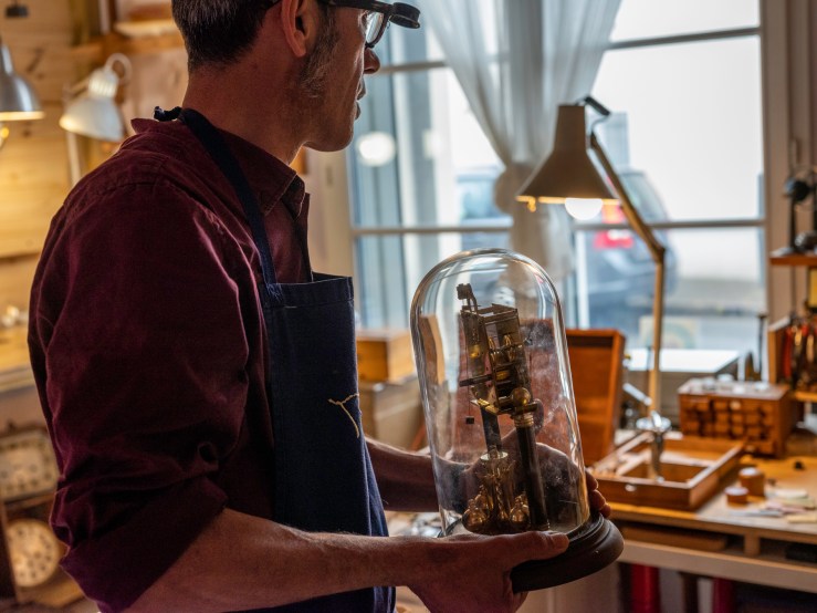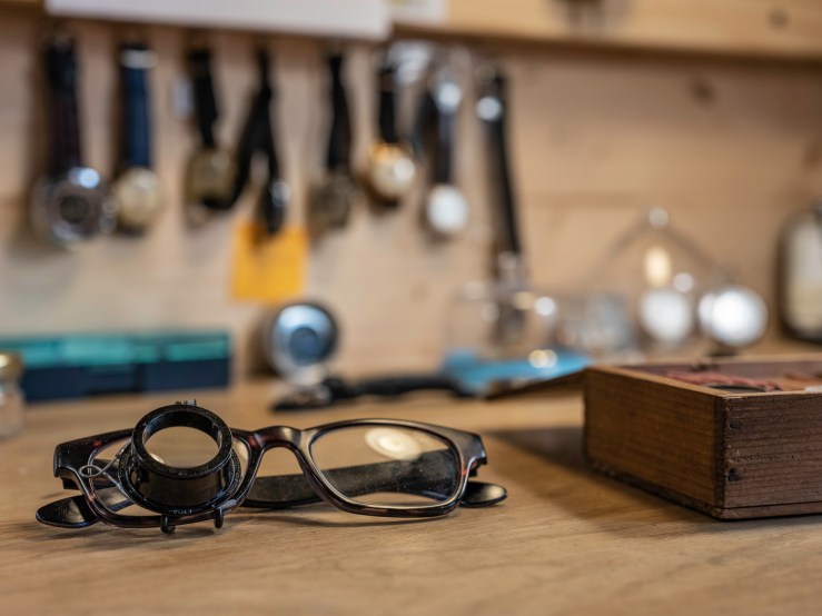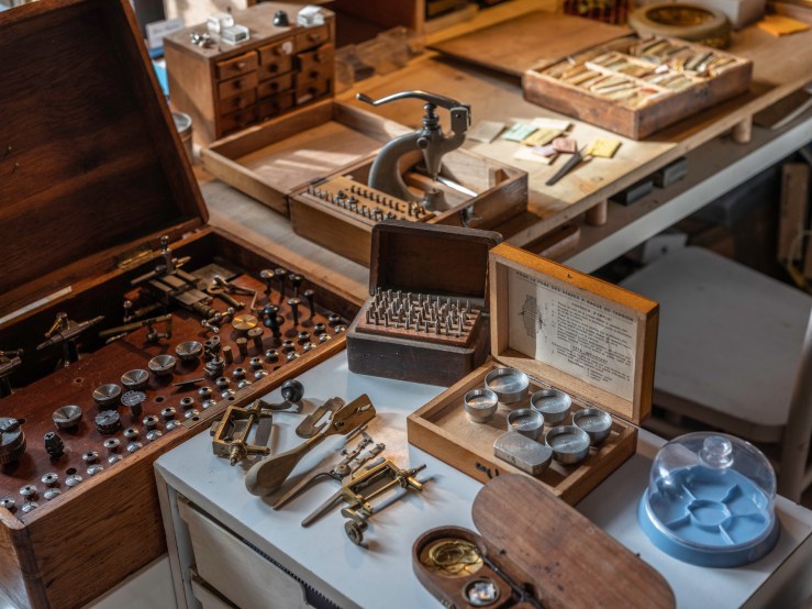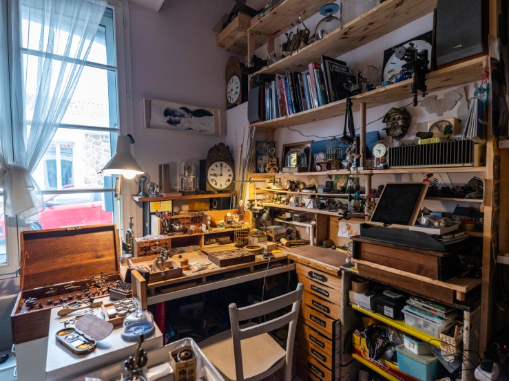 Une des raisons pour lesquelles ce métier me passionne, c’est la beauté des outils et la poésie d’un atelier d’horlogerie. J’ai fait venir le photographe Guillaume Chaplot dans le mien, je lui ai ouvert la porte, et l’ai laissé seul une heure ou deux. J’avais sorti des tiroirs pour l’occasion quelques uns de mes outils, puis je suis revenu travailler un peu pour une série de portraits.